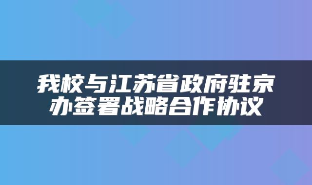 为全面贯彻落实党的二十届三中全会精神,聚焦建设社会主义文化强国,创新校地融合新模式,我校与江苏省政府驻北京办事处于9月22日上午在北京江苏大厦隆重举行战略合作签约仪式。 江苏省政府驻京办党组...