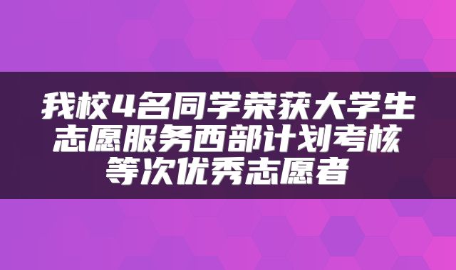 近日,全国大学生志愿服务西部计划项目管理办公室发布《关于印发2023—2024年度大学生志愿服务西部计划考核等次优秀志愿者名单的通知》。我校马召骏、朱润泽、李一甲、王咏恩等4名同学,荣获20...
